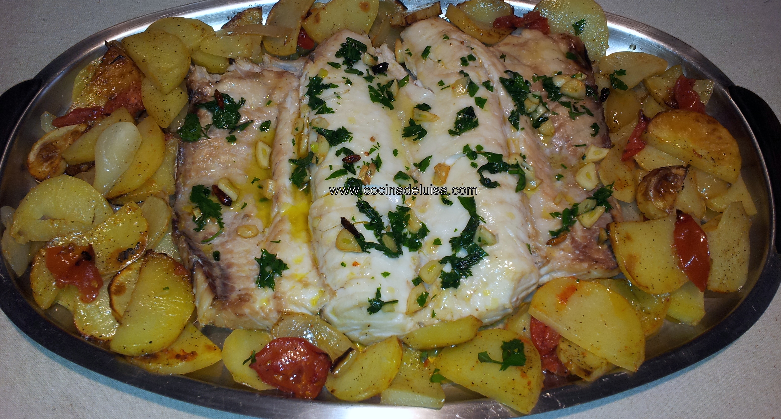 Ingredientes para cuatro personas: 1 cogote de 1 kg y medio; 2 patatas grandes; 1 cebolla, 1 tomate bien maduro; 1 vasito de vino Montilla-Moriles, 3 dientes de ajo, aceite, 4/5 cayenas, perejil, 1 cucharadita de mantequilla, sal y pimienta.