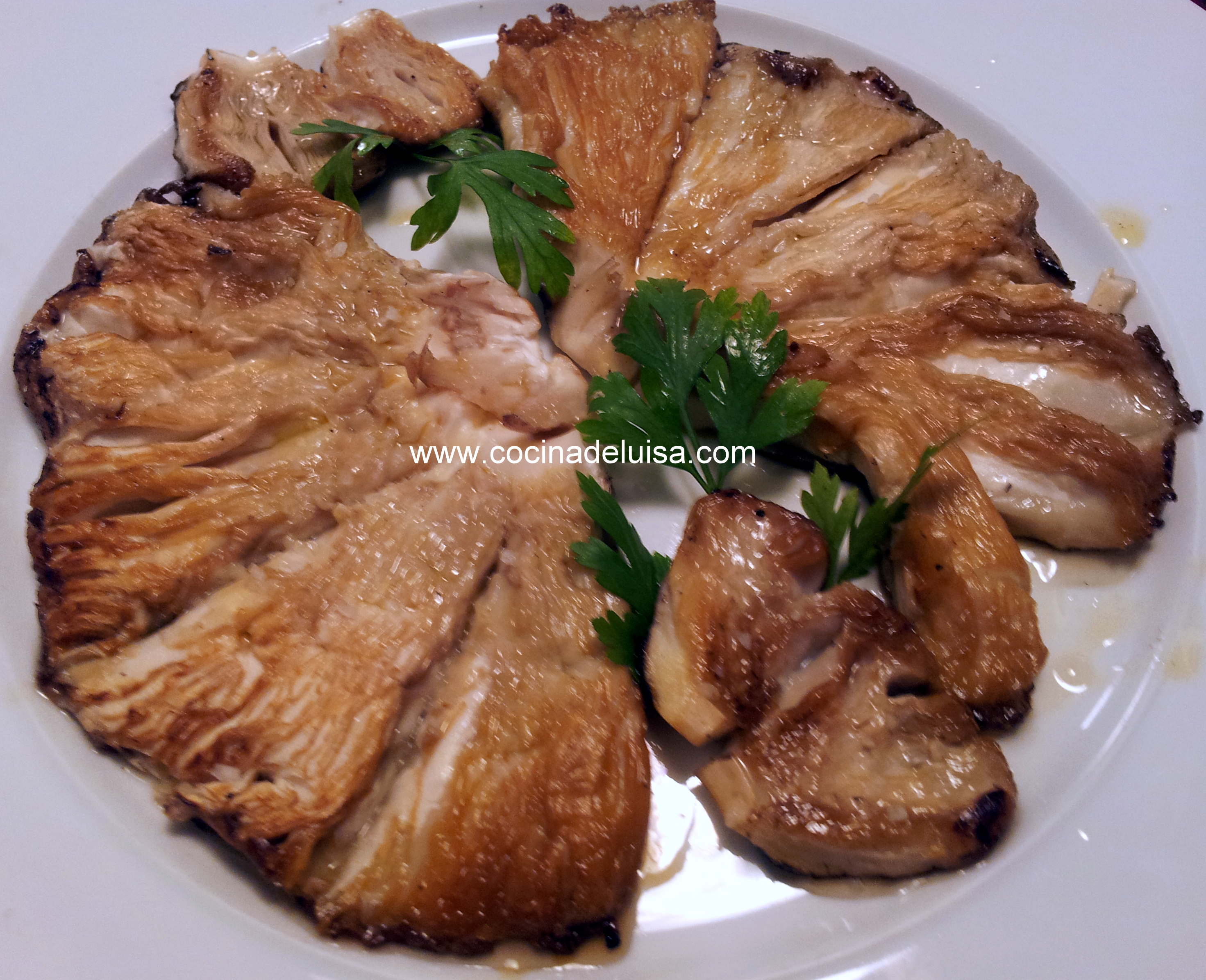 Ingredientes: Lepiotas. Aceite de oliva V.E. Perejil. Sal y pimienta.