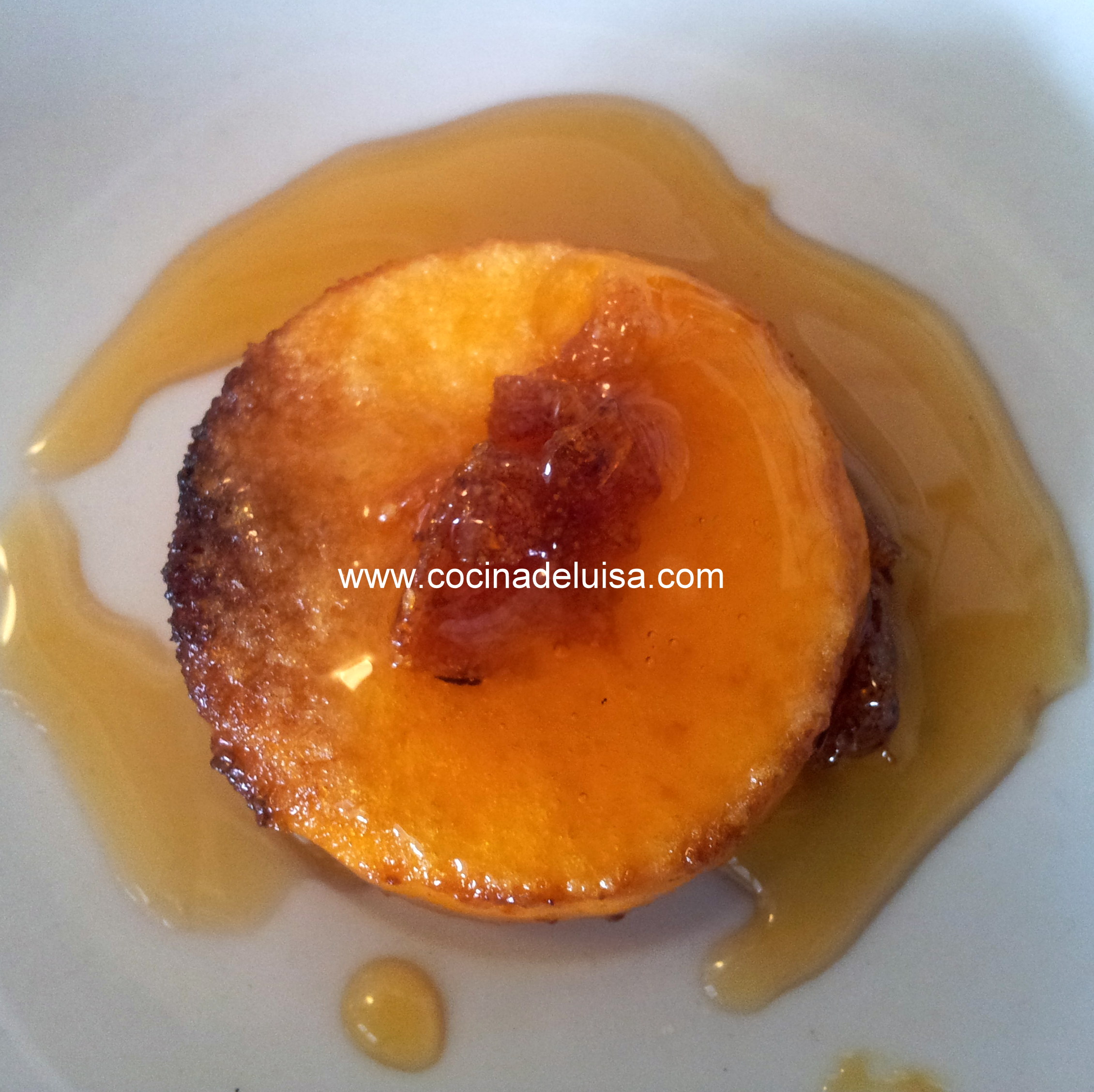 Preparar moldes pequeños, cuantos se deseen, y poner en la base azúcar quemada. Batir las yemas con azúcar blanca, cucharada y media por yema, hasta que quede una mezcla homogénea y fina. Poner una pequeña cantidad en cada molde y cocerlo al baño maría hasta que se cuaje la mezcla. Dejar enfriar y desmoldar. Si se tiene almíbar de frutas añadir un poco por encima. En este caso se ha puesto almíbar de higo.