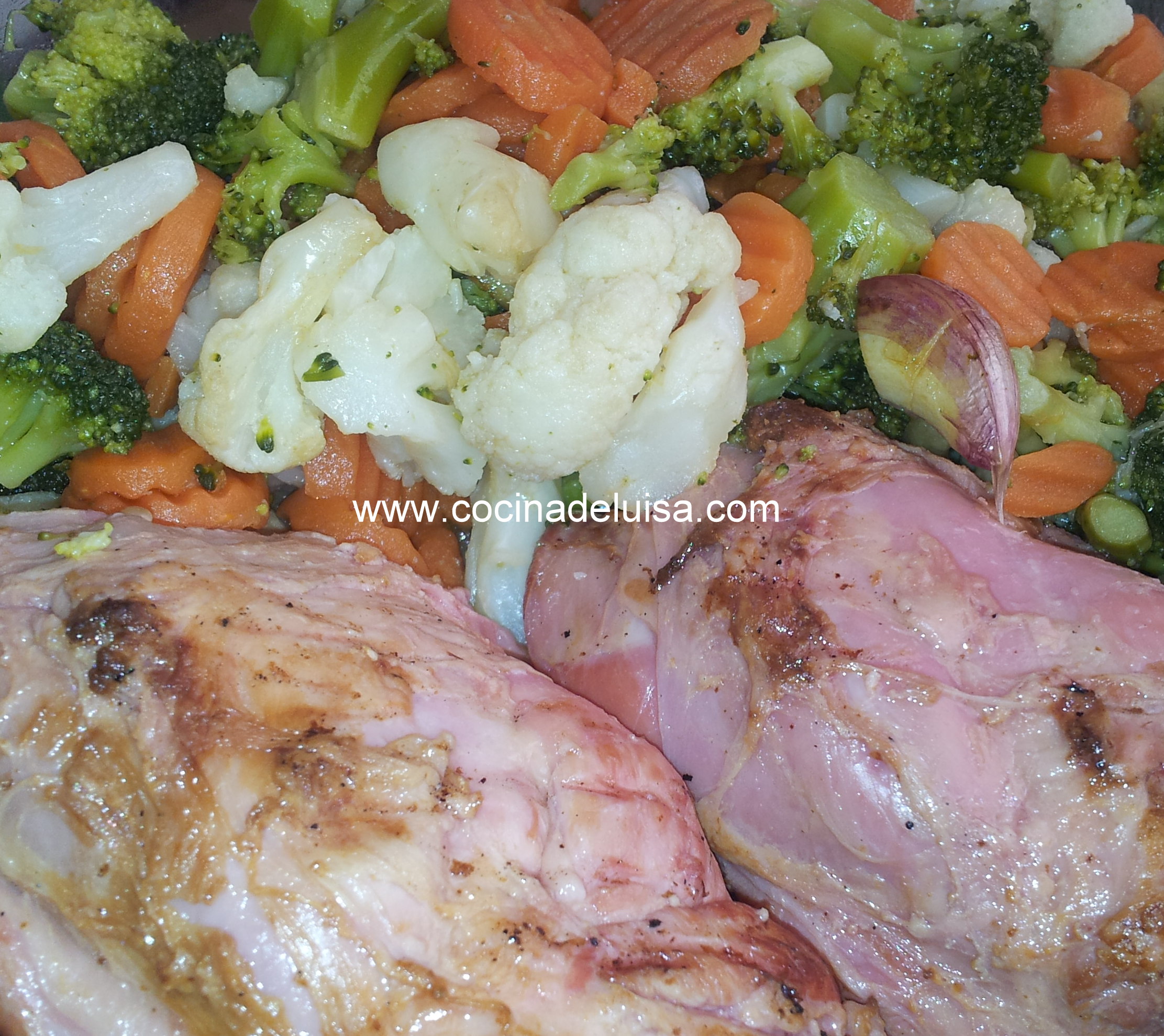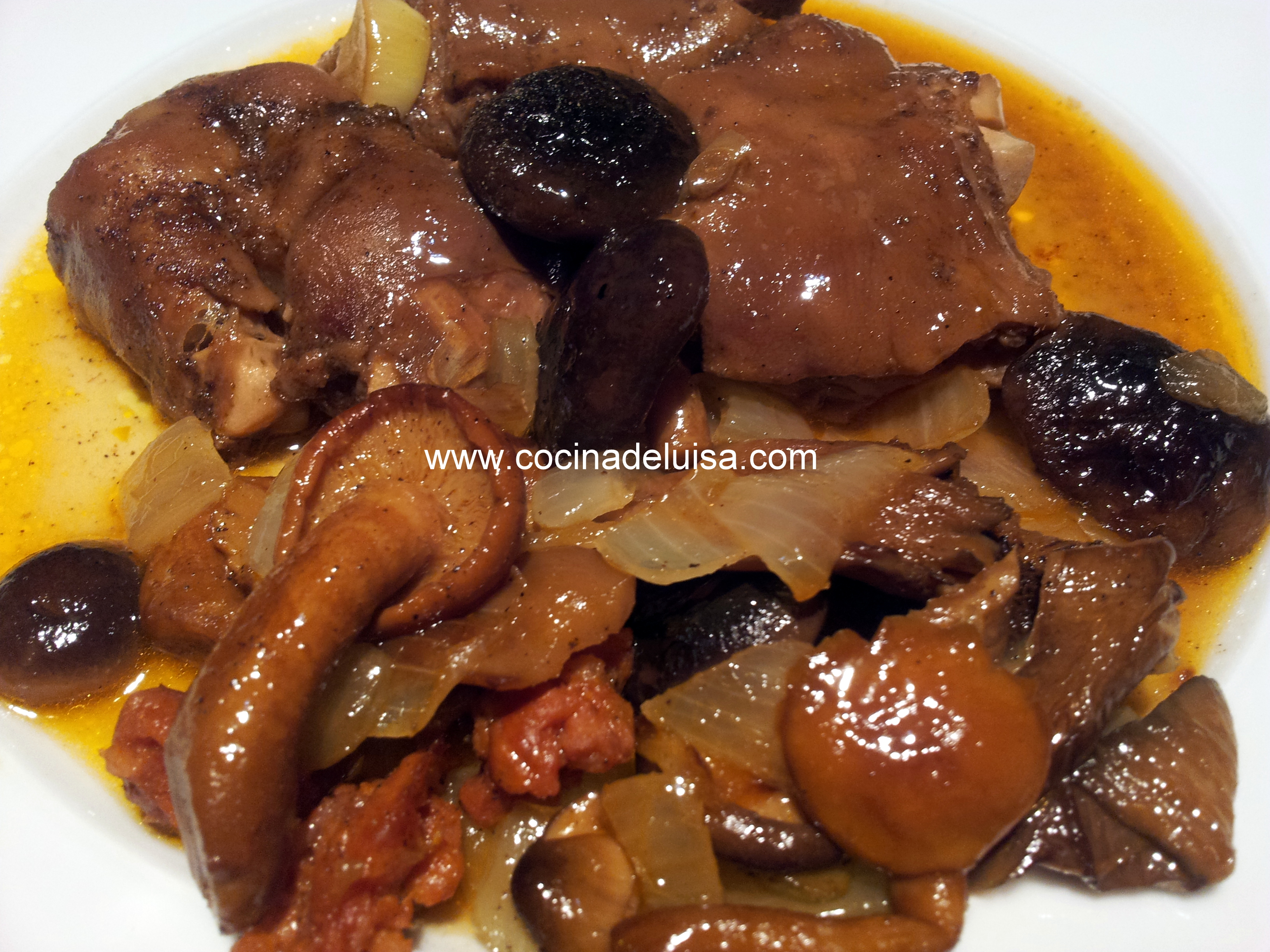 1 frasco de garbanzos tipo La Asturiana o similar. 350 gr. de choco limpio y cortado en tiras. 500gr. de calabaza de carne naranja, pelada. 300 gr. de judías verdes. 1 cebolla grande. 1 pimiento rojo pequeño. 1 dl. de aceite. 1 vasito de vino amontillado. 3 hojas de lima. Pimentón picante. 2 cucharadas de harina de mandioca. Sal y pimienta.