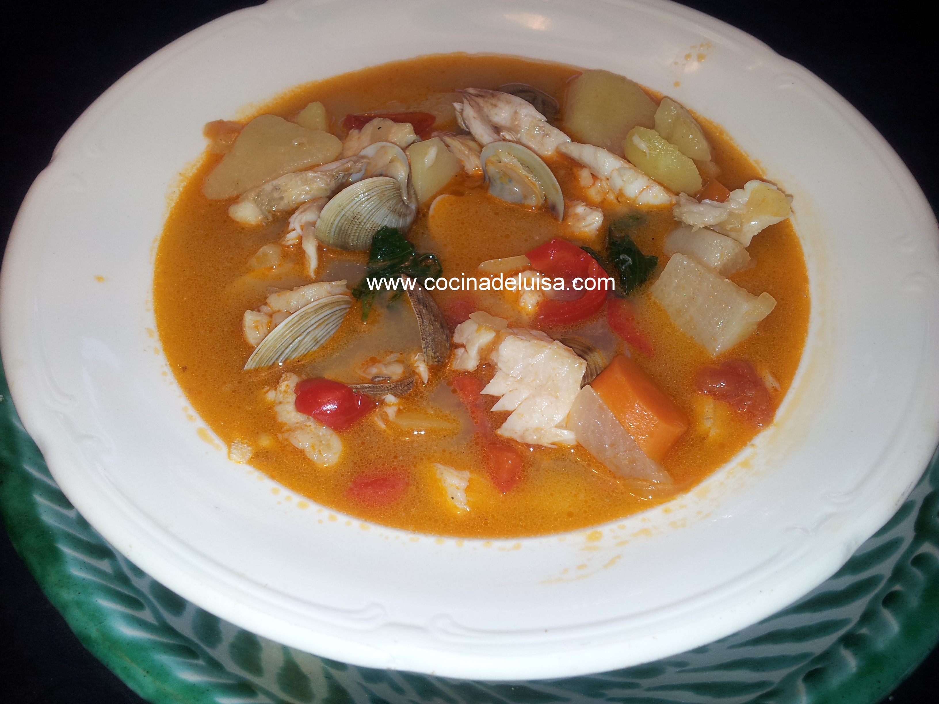Se trata de un guiso con pescado blanco variado, preferentemente de roca, pero se puede hacer con lo que se tenga a mano o encuentre en el mercado.