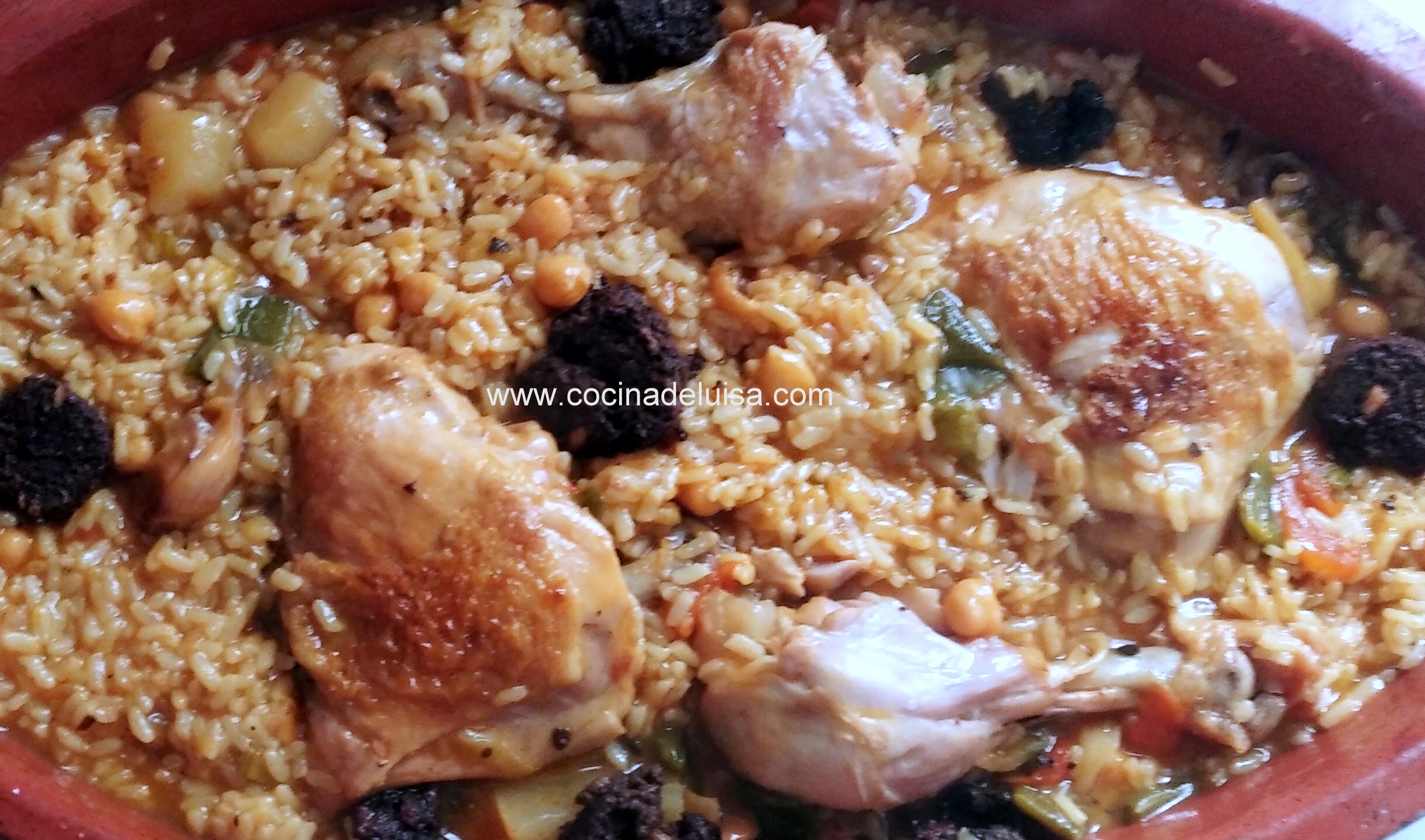Se trata de un arroz cuyos ingredientes son los restos de un cocido del día anterior. El plato queda suculento y excepcional. Se puede hacer al horno, como es típico en Valencia, o bien en cazuela, como en la imagen y receta actual.