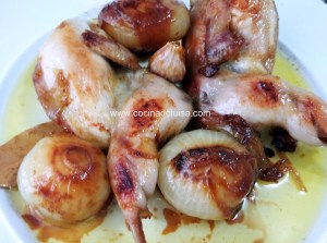 4 codornices. 12 cebollitas. 3 hojas de laurel. 3 hojas de salvia. 8 dientes grandes de ajo. 150cc de aceite de oliva virgen extra. 1 vasito de vino oloroso. Sal y pimienta.